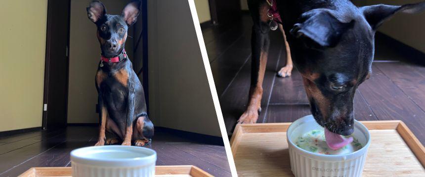 キャベツって犬が食べにくいイメージがあるけど…旬の春キャベツなら甘くて柔らかいのでうちの子もきっと食べてくれるはず!しっかり柔らかくなるまで煮て、干しエビと一緒に煮込むことで海老のうま味もたっぷり染み込んだスープに仕上がりました。ペロッと味を確認してまずはスープから飲み干します。お口の周りが白くなりながら、野菜もパクパク食べてきれいに完食!胃腸にも優しくておいしく水分補給できるスープに飼い主もうちの子もはまりそうです。