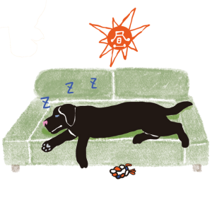 早朝の散歩の後、朝ごはんをしっかり食べることは、犬にとっても健康にいい習慣です。その後は、ちょっと活動的な時間を過ごしてから、お昼寝タイムにするのがオススメです。最近は、人間も昼食後に短時間の昼寝が推奨されていますが、多くの犬も昼寝をしているはずです。正午を挟んだ2時間は精神安定の時間帯なので、静かに過ごしてひと休み。それには寝るのが一番です。