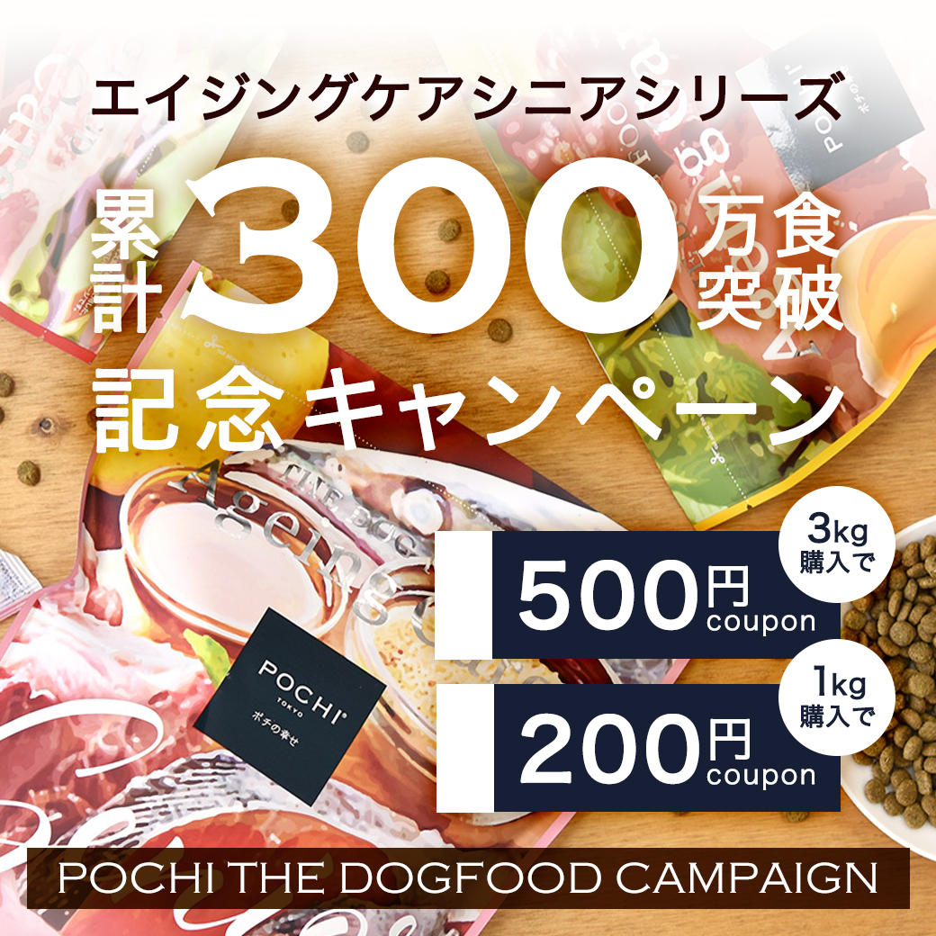 【※終了】《POCHIザ・ドッグフード》エイジングケアシニアシリーズ累計300万食突破記念キャンペーン!最大500円クーポンプレゼント!