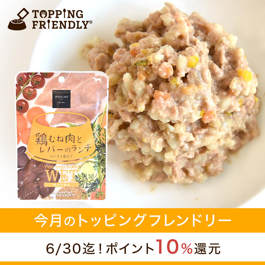 6月30日(月)までの期間限定で10%ポイント還元となります。 例えば「POCHI ザ・ドッグフード ウェット 鶏むね肉とレバーのランチ」を3袋購入なら95ポイント還元!