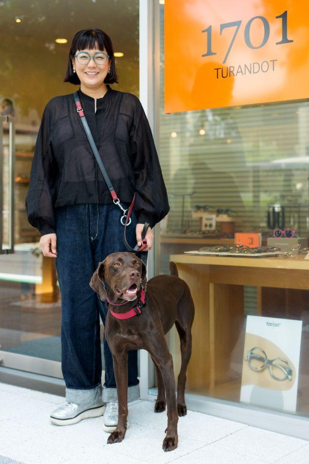 東京・中目黒の目黒川沿いのおしゃれな一角に、マリオに会える輸入眼鏡店「1701 TURANDOT」があります。オーナーの榊原幸絵さんは、毎朝マリオと一緒に、3、40分かけて自宅から店まで歩いてきます。お店のインスタグラムには、商品の紹介の後に、第二の犬生を楽しむマリオの写真がでてきます。ふだんはお店の奥の事務所にいますが、お客さんにはマリオのファンも多く、リクエストがあれば表に出てきます。もともと人には慣れていたので、看板犬としての役目も立派に果たしてくれています。