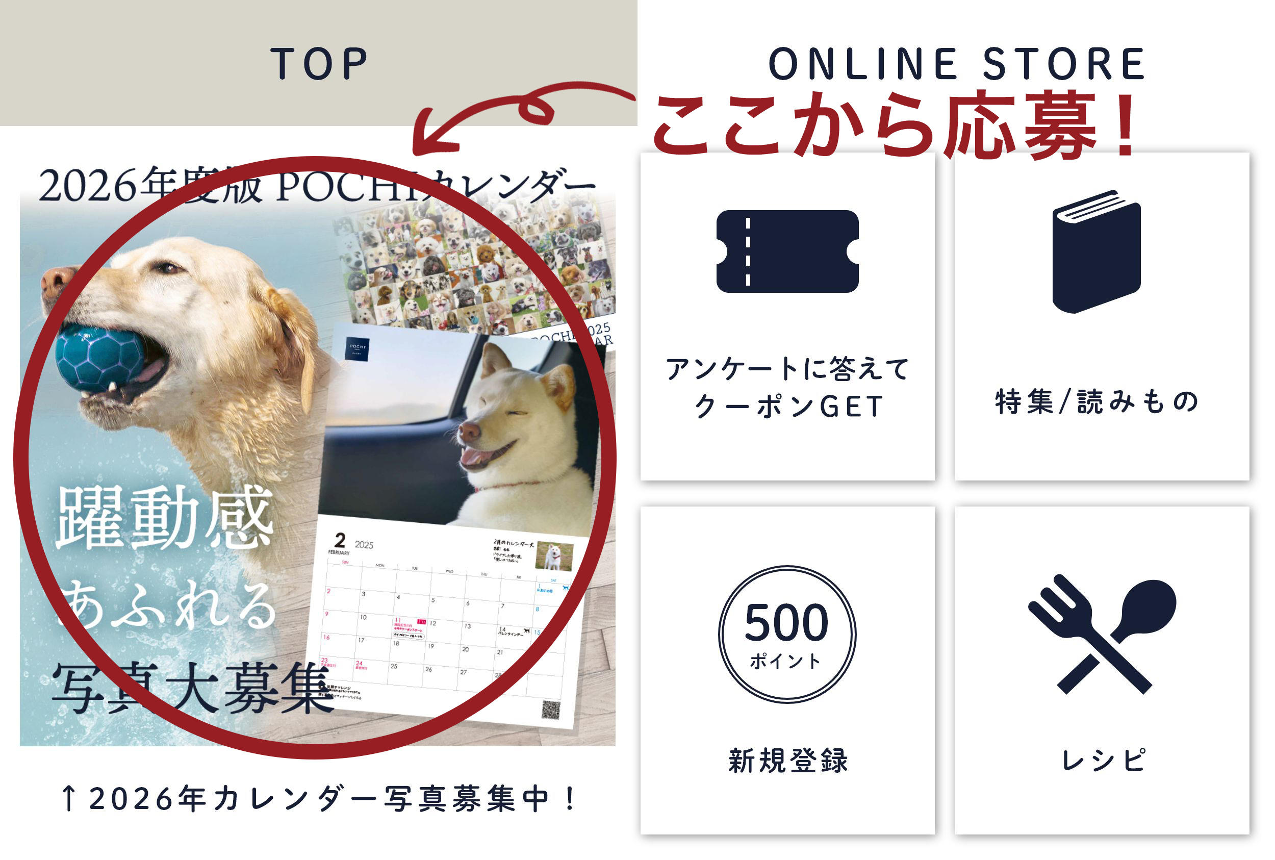 昨年に引き続き、今年も2026年度版POCHIオリジナルカレンダーに掲載する、犬の写真を大募集!