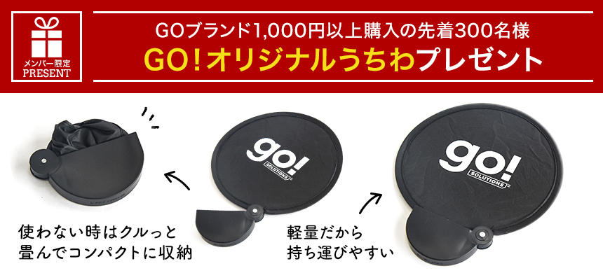 《夏のGO!GO!キャンペーン第2弾》GOブランド商品1,000円以上購入でオリジナル折り畳みうちわプレゼント!