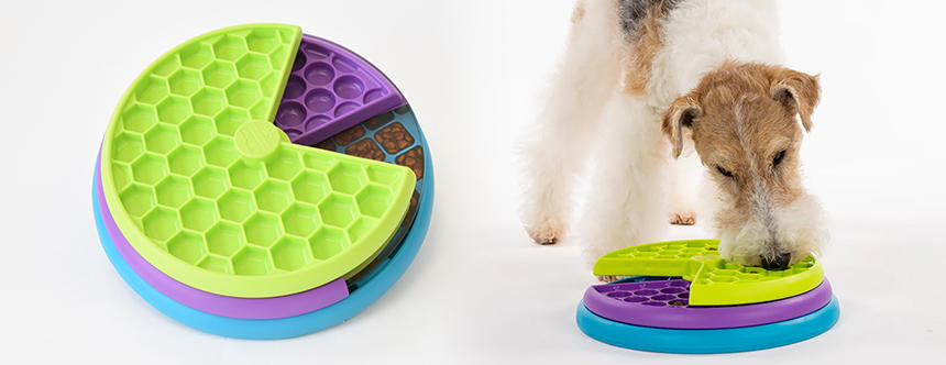 + 脳の運動になる知育トイの要素を含んだ、早食い防止のスロウフィーダー。