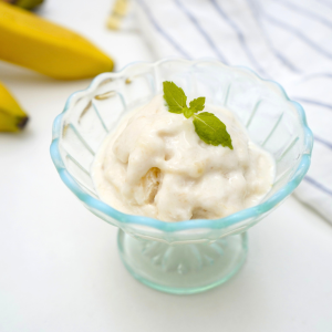 バナナの皮に黒い斑点がでたものを選ぶと柔らかくてつぶしやすいのでオススメです。ねっとり食感が濃厚で甘味を感じるフローズンアイスに仕上がります。
