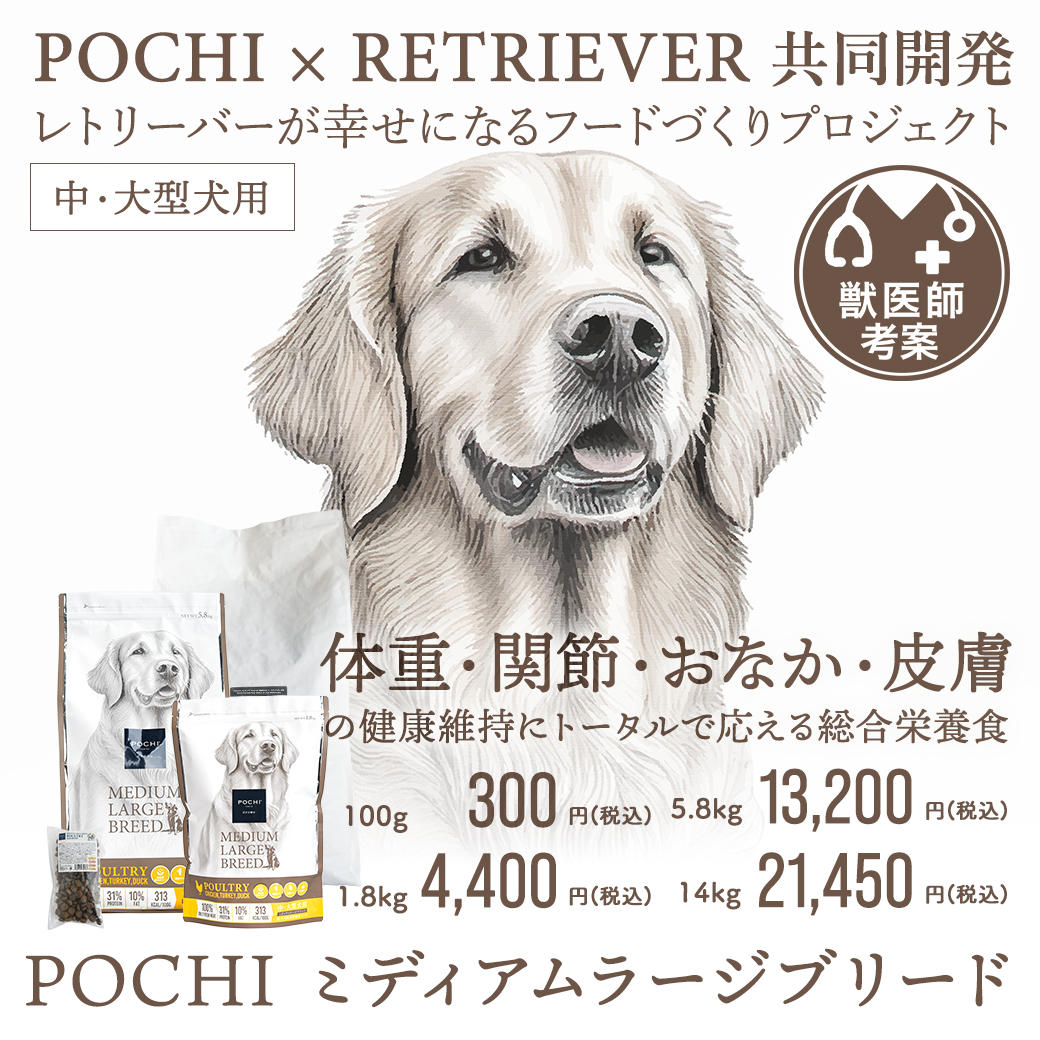 《POCHI × RETRIEVER 共同開発》ミディアムラージブリードが生まれ変わって新登場!