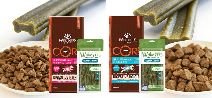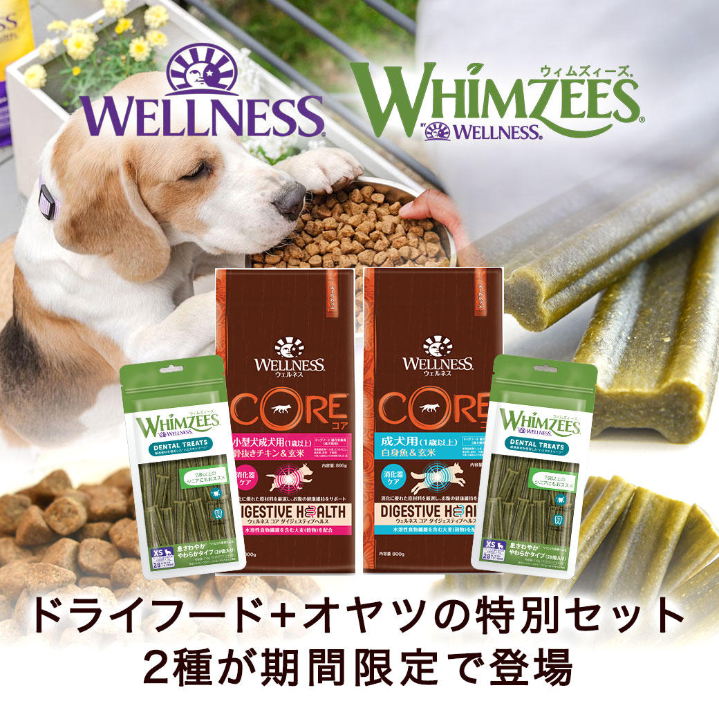今回、ウェルネスのドライフードとウィムズィーズのガムがおトクなセットになって登場となりました。