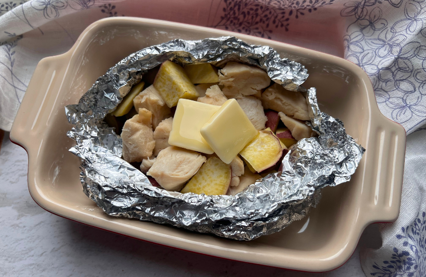 寒くなり始める10月に、ほっこりするあったかごはんはいかがでしょうか?今回は、さつまいもをつかったホクホクのホイル焼きをご紹介。ささみのフリーズドライと一緒にホイルで蒸し焼きにすることで、嗜好性も担保しながら、秋の味覚であるさつまいもを楽しめます。
