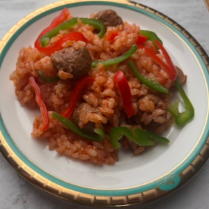 炊飯器に材料を入れてとっても簡単にできたパエリア。彩りにピーマンを入れてみたけどだべてくれるかな?美味しそうにパプリカもピーマンもご飯と一緒にパクパク食べてくれました。うちの子はそのままミートボールをパクリと食べていたけど噛むのが苦手な子は小さくカットしても◎