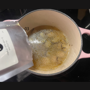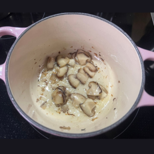3.鍋に米油をしき、①の椎茸を柔らかくなるまで炒める。