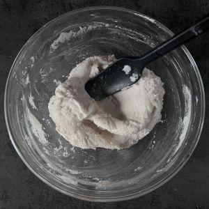 4.③の生地がまとまってきたら2分くらいこねる。(表面が少しつるっとしてきたらOK)