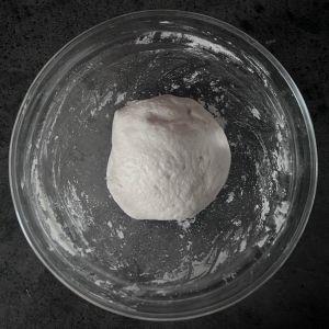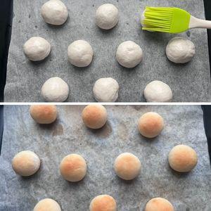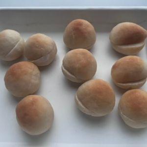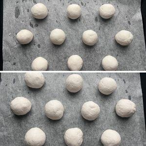 5.天板にオーブンシートを敷き、④を10個分に分けて丸める。霧吹きをして40℃で20分発酵させる。
