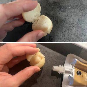 手作りの米粉パンに濃厚なチキンクリームを合わせた贅沢なおやつ、ぜひ味わって食べてね!と思いつ…パクッと2口で食べて、一瞬でなくなりました。もちもちのパンにしっとりクリームがよく合うようでとても気に入ってくれました!