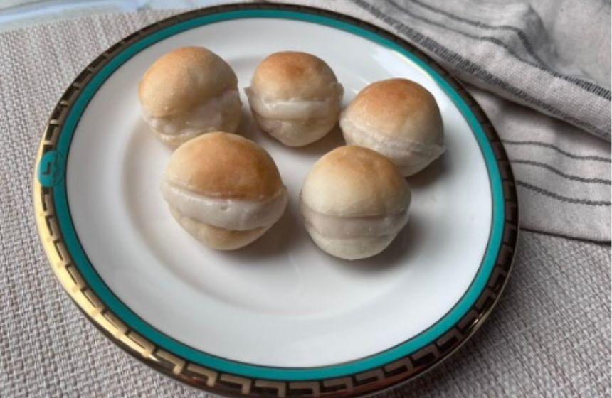 今回は、一口サイズのなんちゃってマリトッツォ。パンにたっぷりの生クリームを挟んだイタリア発祥のスイーツパンを犬用にアレンジ!米粉を使って手作りした外側バンズに、チキンクリームを入れたレシピをご紹介します。J&C プレミアムトリーツ チキンクリーム はチキンを使ったクリームタイプのおやつ。色が白っぽく、粘性もあるので、生クリームの代わりとして活用します。キャップ付きなので、好きな量だけ出して使えて便利です。