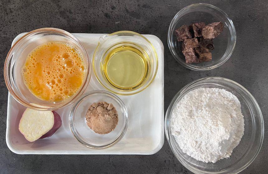 焼き色と嗜好性を高めるために、きび砂糖を入れていますが、気になるかたはいれなくてもOK。白い砂糖よりもきび砂糖の方がミネラルが多く含まれており、自然な甘さに仕上がります。