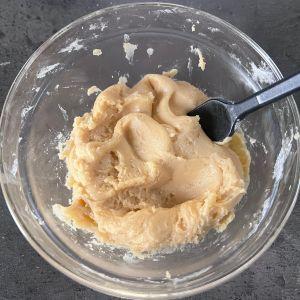 2①に米油を少しずつ入れ、白っぽくなるまでよく混ぜる(しっかり乳化させる)。