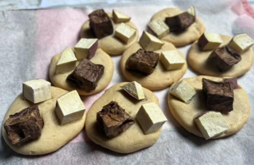 犬と楽しむ!簡単バレンタインレシピ #サツマイモとビーフのチャンククッキー