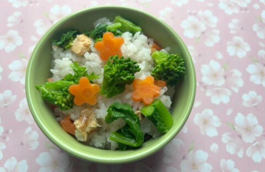 仕上げのトッピングには緑色が鮮やかな菜の花。春の代名詞とも言われ、ビタミンCや食物繊維を豊富に含み、健康維持のサポートをしてくれます。栄養バランスもばっちりで、見た目も華やかな炊き込みご飯は、ひな祭りにピッタリです。