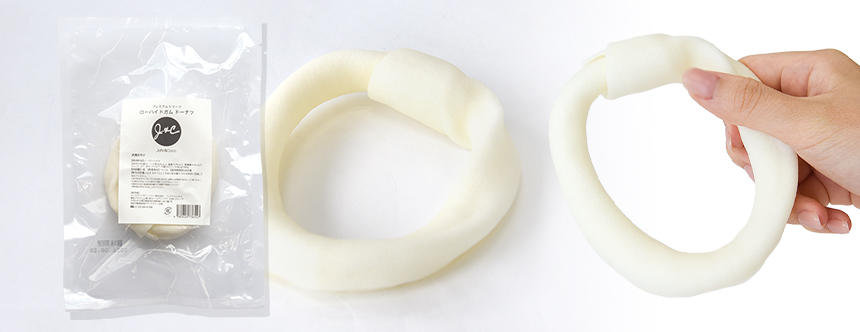 肉厚なローハイドを巻いて輪にし、より噛み応えを感じられるように仕上げた「ドーナツ」。