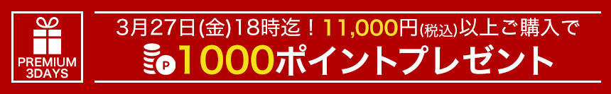 3月27日(金)までに11,000円(税込)以上ご購入いただいた方全員に1000ポイントプレゼント!