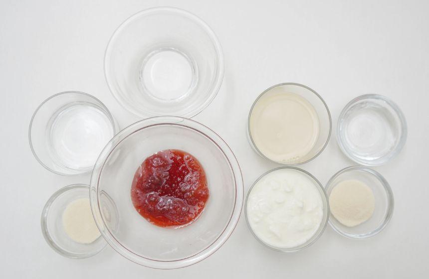 a-1. いちご層のゼラチンを水(ゼラチン用)でふやかす。