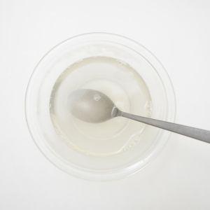 a-2. 耐熱ボウルに水を入れ、電子レンジで500wで30秒加熱し、a-①を溶かしておく。