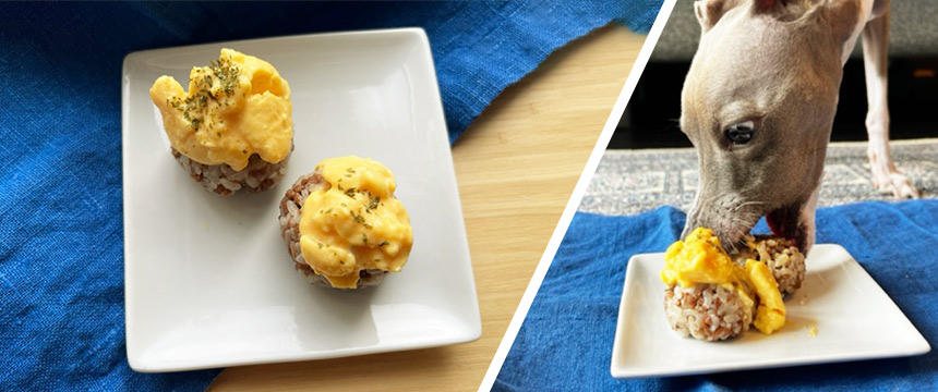 犬も喜ぶ♪とろ~り、ひとくちオムライス[#犬の手作り食]