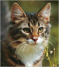 また、猫本来の食性は昔から肉食です。イエネコの祖先はアフリカ原産のヤマネコの一種(Felis Silvestris)であるといわれています。数千年前、猫がエジプトの穀物農家の人々と共に暮らすようになって以来、さまざまな姿形の猫が現れましたが、体のしくみはほとんど変わっていません。人為的な品種改良を経てもなお、体内の生体反応や基本的な本能はそのまま保たれているのです。すぐにでも野生に適応できる高い能力を維持していることは、野良猫を見ればよくわかります。やわらかな被毛の内側に宿る、狩猟動物の強靭な魂。猫は愛らしくもたくましい、立派な肉食動物なのです。