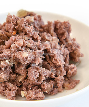 新鮮な肉や魚をメインにハーブ・フルーツ・野菜、オイルをバランスよく配合した総合栄養食のウェットフード。