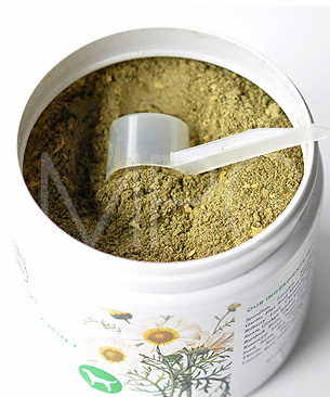 ケルプ、アルファルファ、フラックスシードミール、ビール酵母、レシチン、スピルリナ、ガーリック、カモミール、オート麦茎、ダンデライオン根、タイム葉、ローズマリー、ペパーミント  フェンネル、ローズヒップ、リコリス根、ジンジャー根