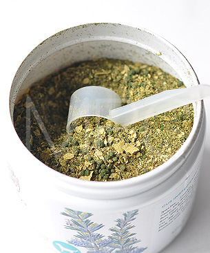 アルファルファ、ケルプ、フラックスシード、ビール酵母、レシチン、スピルリナ、ガーリック、ローズヒップ、レッドクローバー、カワカワ、ホップ、カモミール、キャットニップ葉、ダミアナ、ロベリア、パッションフラワー、バレリアン根、ローズマリー葉、スカルキャップ