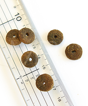 タンパク質 28.5%以上、脂質 12%以上、粗繊維 3.5%以下、灰分 7.5%以下、水分 10%以下