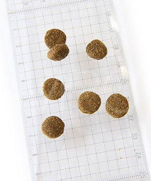 タンパク質 24%以上、脂質 12%以上、粗繊維 5%以下、灰分 9.5%以下、水分 10%以下、カルシウム 1.2%以上、リン 1%以上、タウリン 0.1%以上、オメガ6脂肪酸 1.7%以上、オメガ3脂肪酸 1.2%以上、プロバイオティクス 100,000,000CFU/lb以上(バチルスコアグランス)