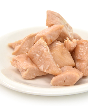 国産の鶏ささみを、旨味と肉汁を閉じ込めるために1度焼いてからひとくちサイズにカットし、レトルト加工しました。
