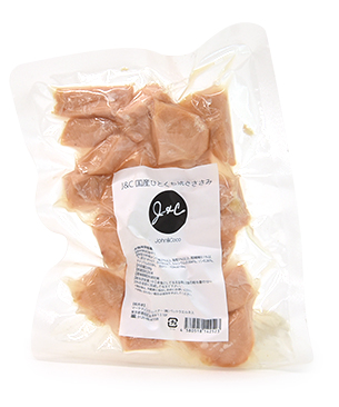 国産の鶏ささみを、旨味と肉汁を閉じ込めるために1度焼いてからひとくちサイズにカットしてレトルト加工。