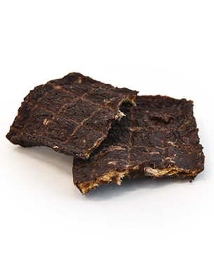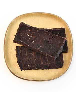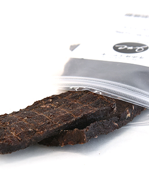 牛肉の赤身部分をミンチにし、ステーキ状に成形して乾燥させたシンプルなおやつ。