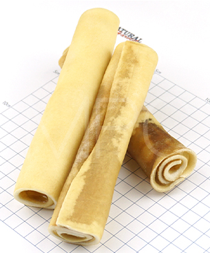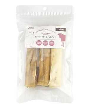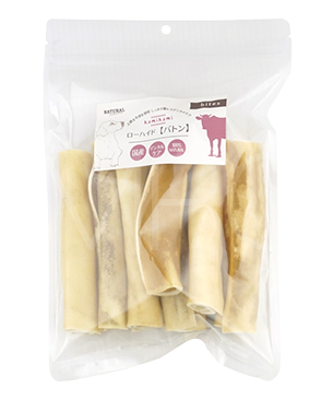 上質な国産の牛皮を使用したローハイドガム。大型犬でも噛みごたえ十分な硬めのバトンタイプ。