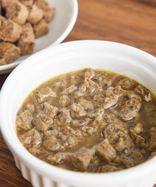 袋から出してそのまま与えるか、同量のぬるま湯を加えてふやかして与えてください。