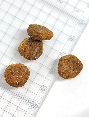 粗タンパク質 32.0%以上 粗脂肪 16.0%以上 粗繊維 4.0%以下 粗灰分 8.5%以下 水分 10.0%以下 リン 0.8%以上 マグネシウム 0.1%以下 タウリン 2,790mg/kg以上 オメガ6脂肪酸 3.0%以上 オメガ3脂肪酸 0.9%以上