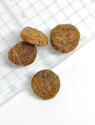 粗タンパク質 32.0%以上 粗脂肪 16.0%以上 粗繊維 4.0%以下 粗灰分 8.5%以下 水分 10.0%以下 リン 0.8%以上 マグネシウム 0.1%以下 タウリン 2,790mg/kg以上 オメガ6脂肪酸 3.0%以上 オメガ3脂肪酸 1.0%以上