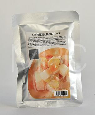 ジャガイモ、ニンジン、キャベツ、カブ、鶏胸肉、アスパラガス、鶏ガラスープ、タウリン、キレート亜鉛(1袋あたり亜鉛8mg配合)、卵殻カルシウム