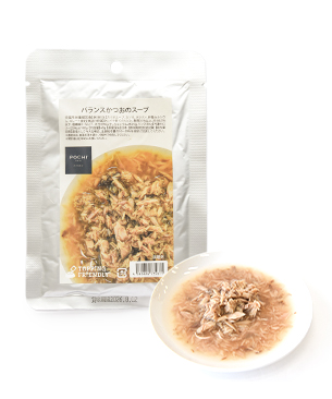 「POCHI バランス かつおのスープ」は普通のスープとは違い、リンが過剰にならないように犬にとってとても大切なリンとカルシウムのバランスを調整し、不足しがちな亜鉛を配合しました。