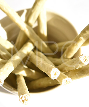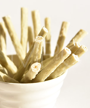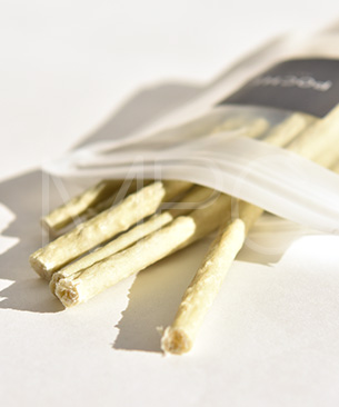 ナチュラルにこだわり厳選した原材料を使用した、安全性の高い国産のデンタルケア用ローハイドガムです。口腔内の健康維持のために機能性成分グロビゲンPGを1本あたり約300mg配合。グロビゲンPGは、鶏卵由来の粉末状の新素材で、デンタルケアの有用成分として近年注目されています。スティックタイプで、手でポキっと折れる硬さです。