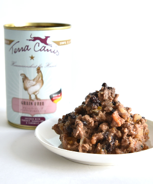 「テラカニス ピュアミート チキン」はドイツバイエルンのお肉屋さんが厳選した人間用食品グレードで品質の高い内臓をメインにしたウェットフード。肉類の含有量は97%。ドライフードのトッピングとして、手作り食の食材としておすすめ。